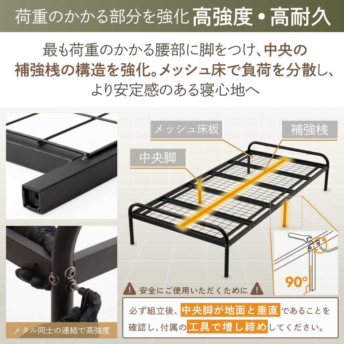 スチールベッドの下にピッタリサイズのメッシュ引き出し付きのベッドです。何を入れるかは自分次第!自分好みの使い方でベッド下スペースを有効活用できます。