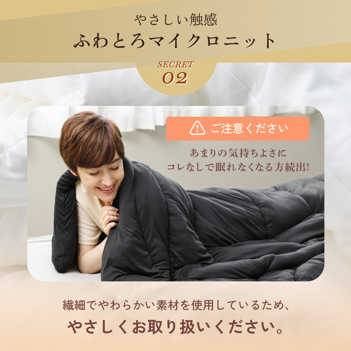 素材にこだわり、まるでスフレのように肌触りのいいお布団です。その気持ちよさは、撮影の際にモデルさんが本気で寝てしまうほど!是非この肌触りをご体感ください。