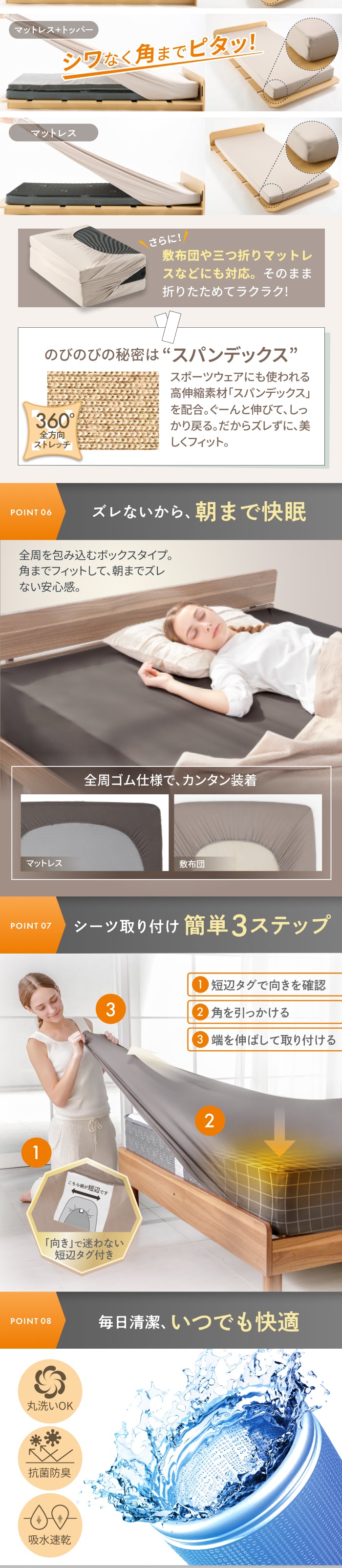 たたまず丸めて置いていてもシワにならず、とてもきれいなシーツです。撮影の際には、あまりの着脱の簡単さときれいさにスタイリストはじめスタッフから大人気でした!