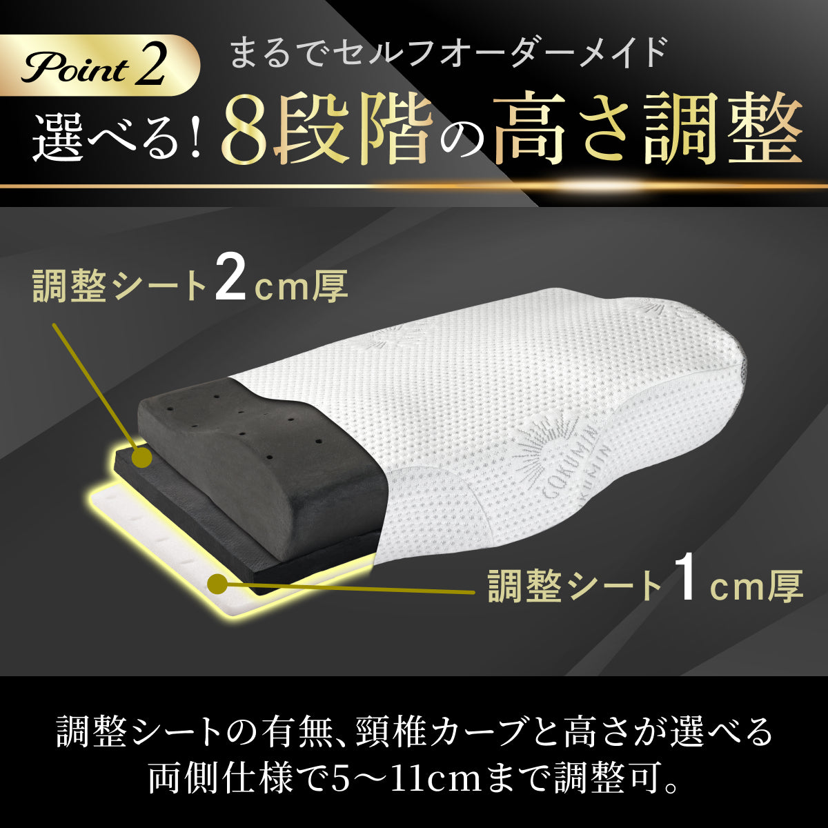 GOKUMINのベストセラー「プレミアム低反発枕」が、さらにグレードアップ!これまでよりも、より高さ調整段階が細かく、お好みの高さに調整可能。さらにスペアカバーもついてより使いやすさにもこだわりました!