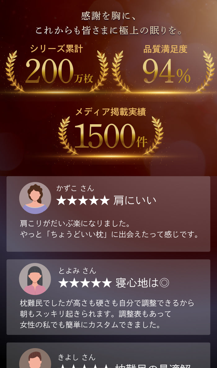 沈み込みすぎず、ふんわり包まれる感覚が最高です。首や肩の負担が減り、朝までぐっすり眠れました。高さ調整ができるのも便利で、自分にぴったりの枕が作れます。