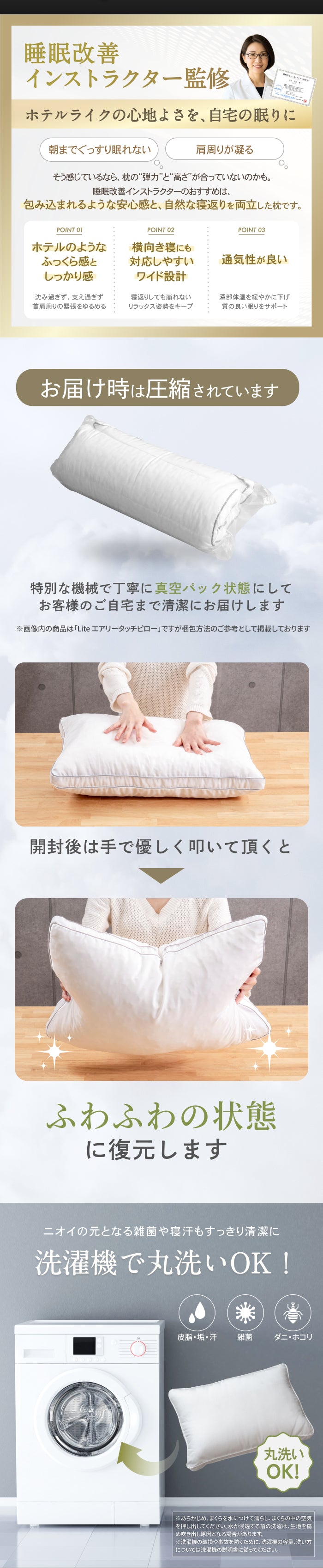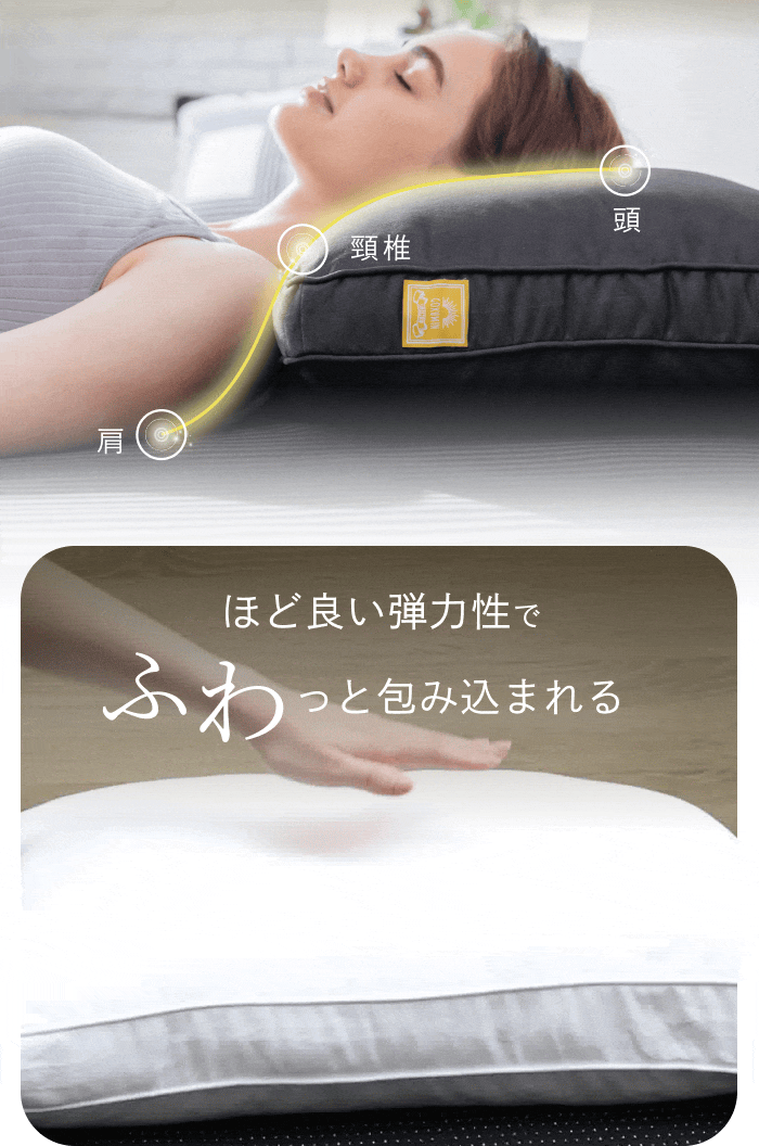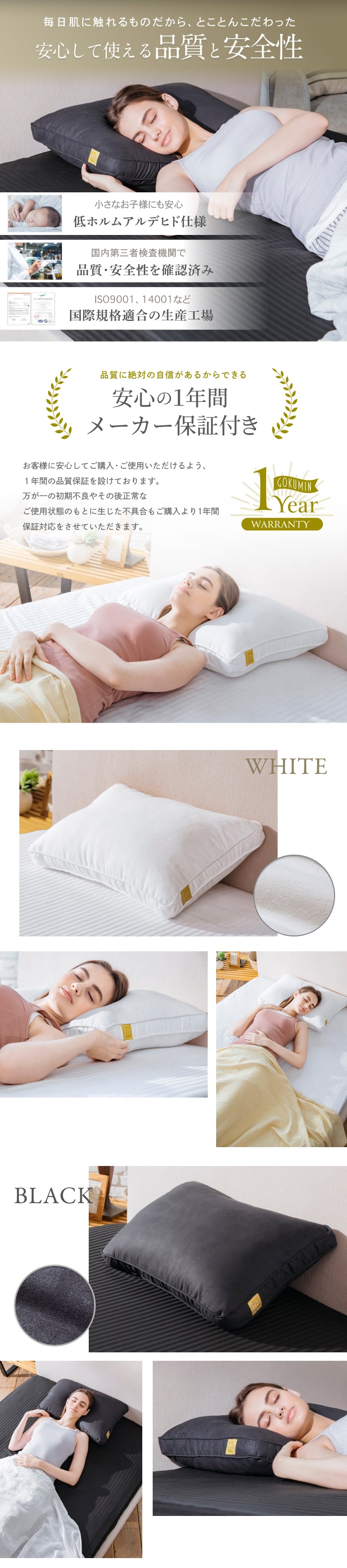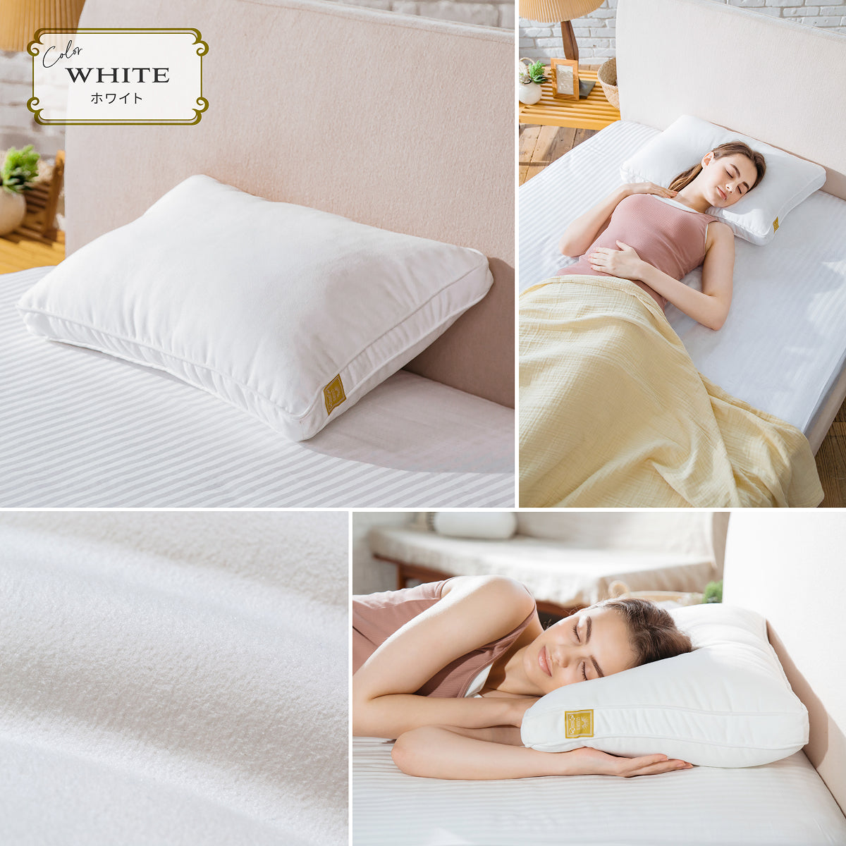 一流ホテルの羽毛枕を目指して開発した、新しい綿枕です。新開発のファイバーボールテクノロジーⓇを使い、ふわふわの質感を実現しました。綿の出し入れで高さと硬さの調整も可能。高級感のあるブラックカラーもご用意しています。