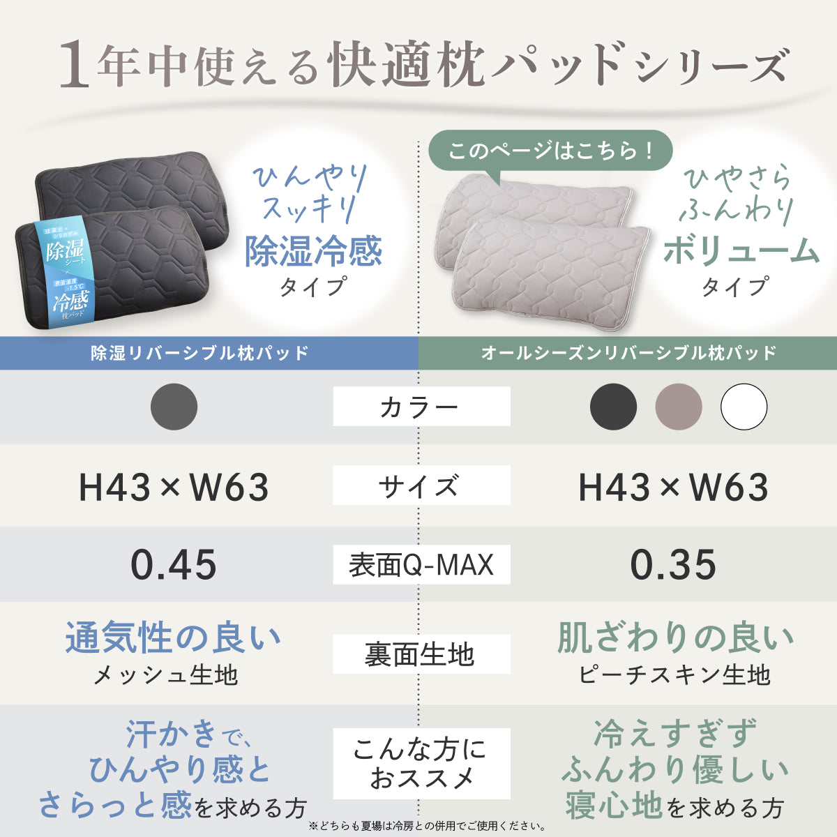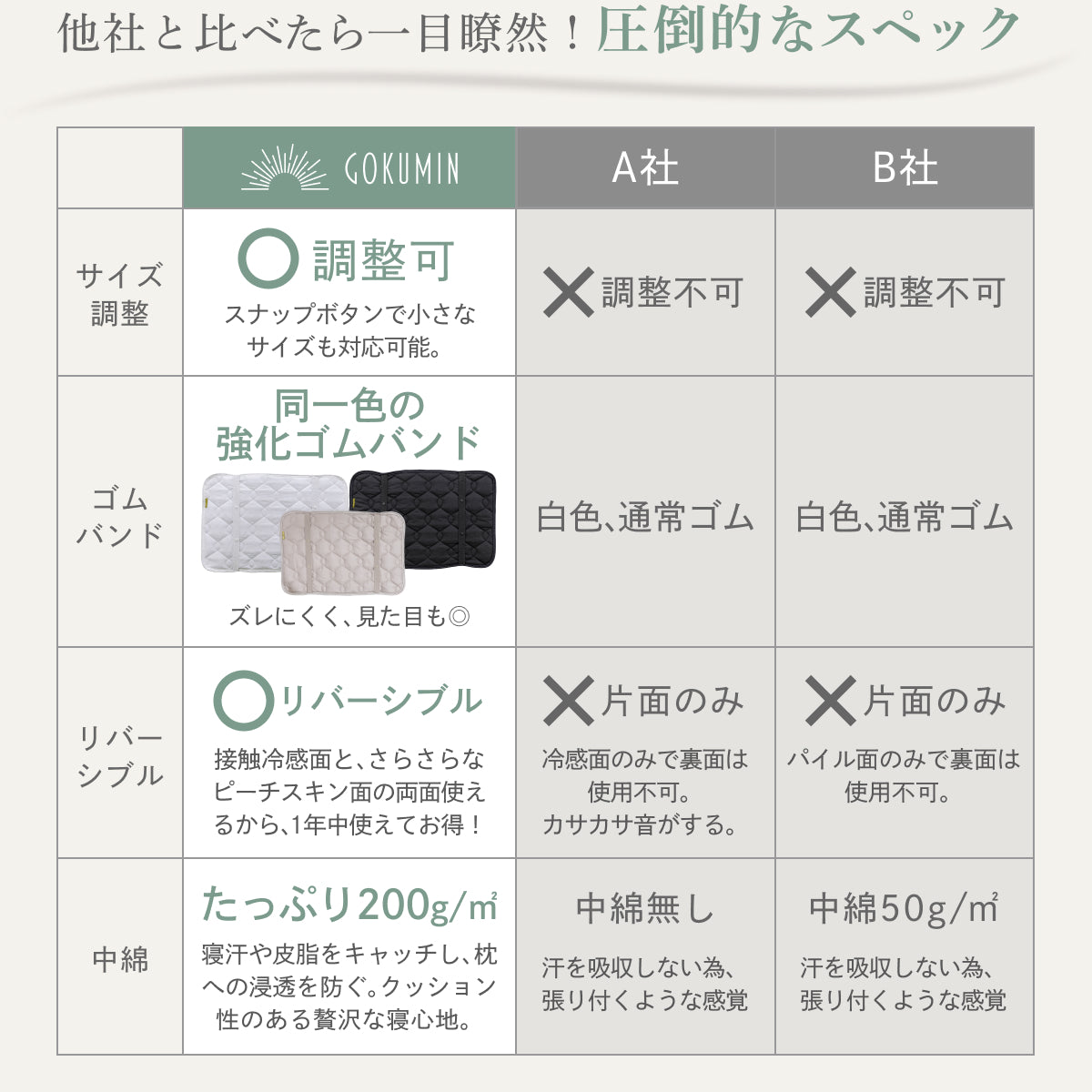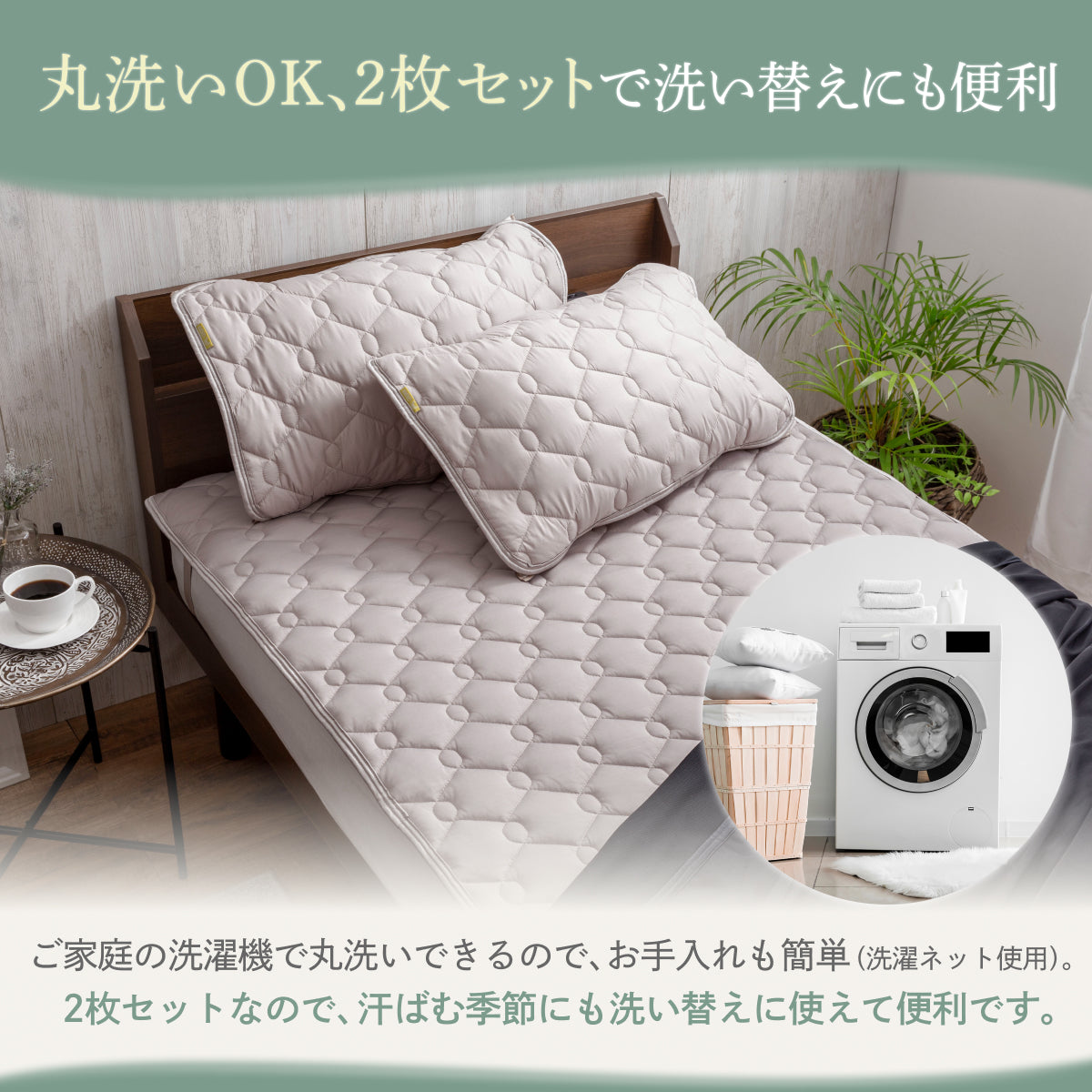 オールシーズン使える“さらさら、ふわふわ面”と夏にピッタリの“ひんやり面”が両立した、リバーシブル型の枕パッドです。ゴムバンド付きなので現在ご使用中の枕にラクラク着脱可能!2枚セットだからいつでもお洗濯できるのも◎です。GOKUMIN枕との一緒のご購入がおすすめ♪