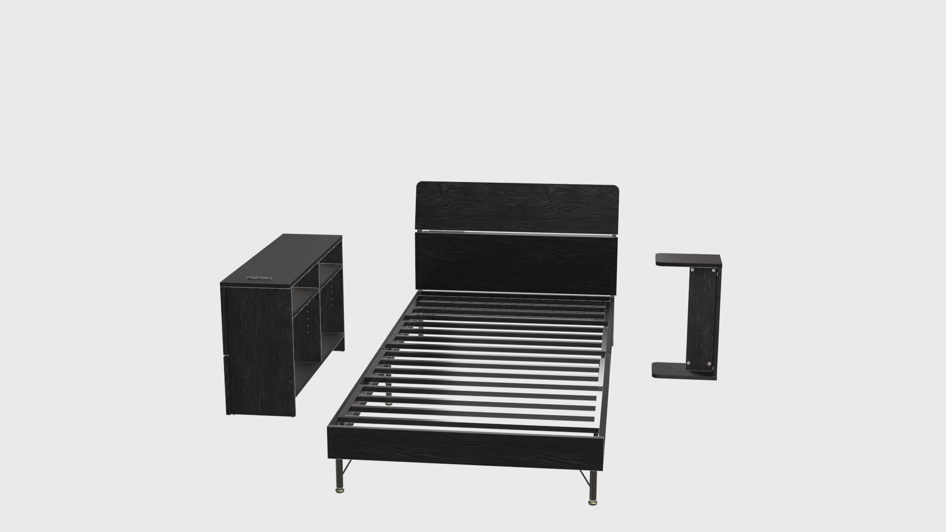 専用に設計された大容量収納付きのAVボードとサイドテーブルが付属しており、これを購入するだけで、贅沢な寝室空間を手に入れることができます。